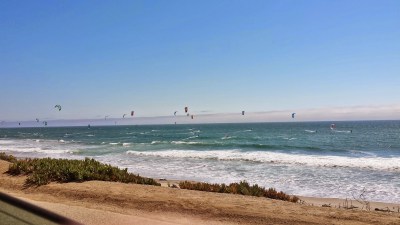 When we were all done, we brought up our boxes to the guy and he weighed them for us. The berries were $3.00 a pound and mine came out to about $18 which was worth it because these were organic, all natural, no pesticide strawberries. So yes I gladly handed over my $20 to buy these strawberries. My co-workers ask if I tried some as I was picking and I said no but I should have because I had one in the car and they were delicious. After we finished picking we drove to Ben Lomond where we were going to can at my co-workers house. We saw this beautiful seaside and a bucket load of people parasailing: